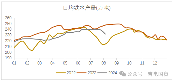 上周日均铁水产量231.70 万吨,环比减少2.08%,同比减少6.32%。