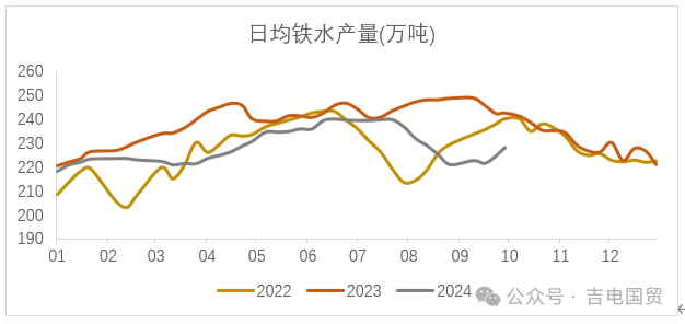 上周日均铁水产量228.02 万吨,环比增长1.41%,同比减少6.06%。
