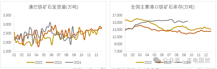 截至10月25日,当周澳巴铁矿石发货量2291.50万吨,环比增长0.02%,同比减少3.39%。截至10月25日,全国主要港口铁矿库存为15341.68万吨,环比增长0.29%,同比增长29.18%。